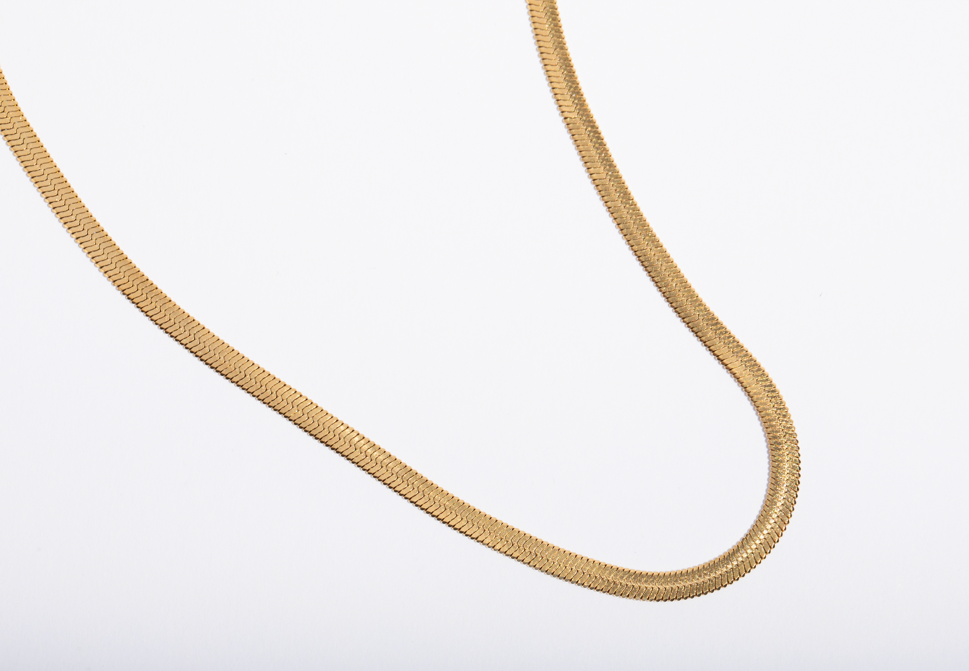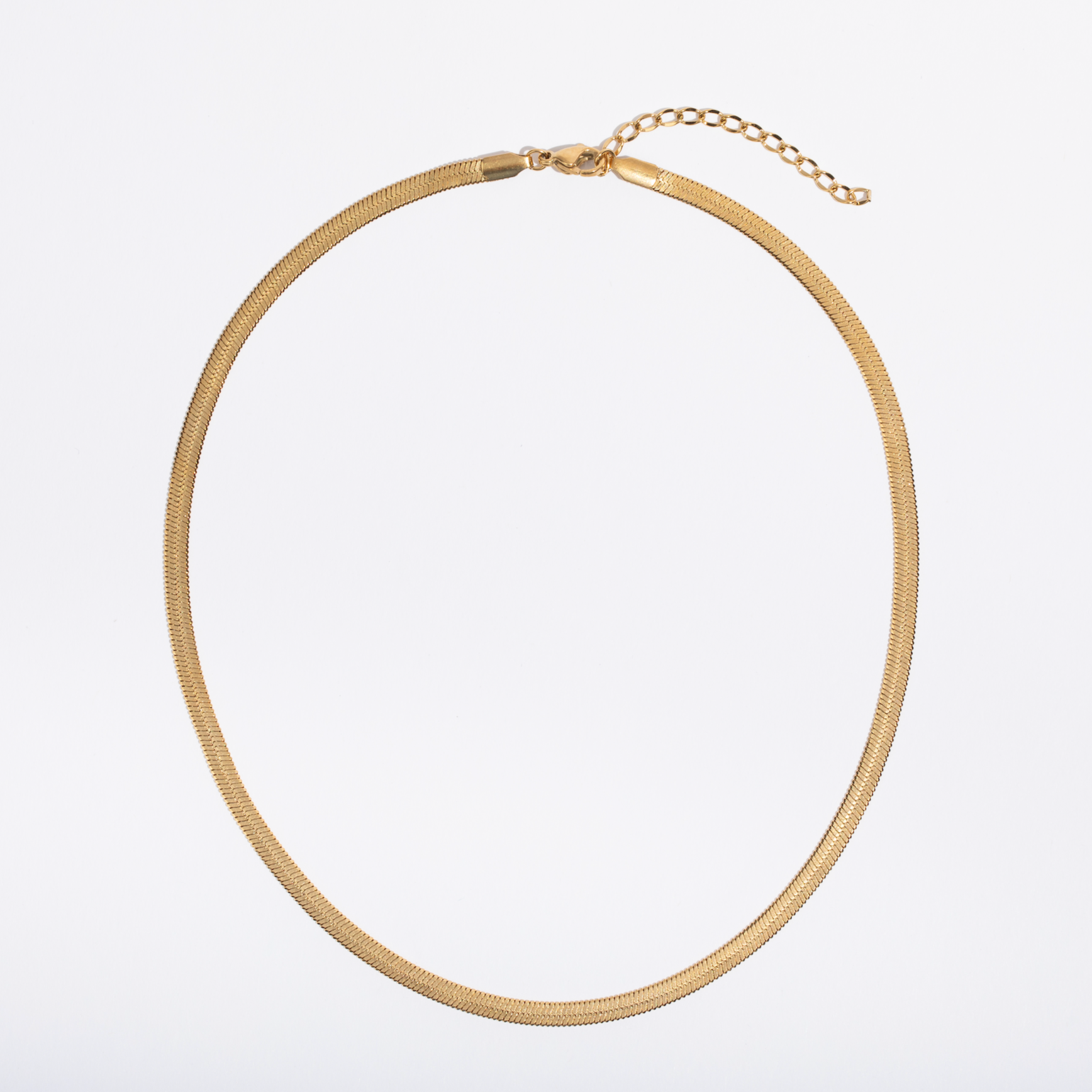 Classic, timeless herringbone-style necklace that can be layered with other necklaces or worn as an everyday accessory.